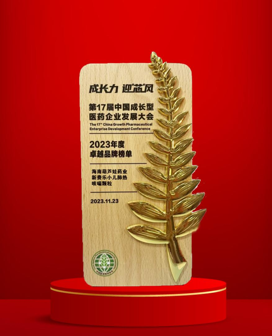 大会期间,一年一度的“金叶奖•2023年度医药行业风云人物奖”榜单重磅揭晓,ks凯时药业集团党委书记、董事长刘景萍荣耀上榜。金叶奖是为了表彰广大医药企业家或企业为行业茁壮发展做出的卓越贡献而设立的奖项,“金”象征着品质、品牌、影响力,“叶”象征着生命、健康、成长力。金与叶结合,有“敬业、兢业、竞业”之意。此外,集团黄金单品新费乐®小儿肺热咳喘颗粒凭借卓越的产品质量和品牌影响力赢得了行业、市场和消费者的肯定,获得了“2023年度卓越品牌奖”。